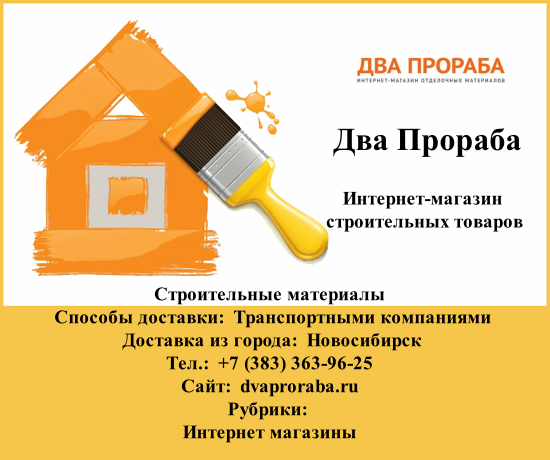 Группа товаров/услуг: Напольные покрытия, сантехника и мебель для ванной, двери, плитка, теплые полы, обои и потолки, сухие строительные смеси, лакокрасочные материалы, строительные материалы Способы доставки: Транспортными компаниями Доставка из города: Новосибирск Тел.: +7 (383) 363-96-25 Сайт: dvaproraba.ru Рубрики: Двери Интернет магазины товаров для строительства и ремонта Интернет магазины стройматериалов